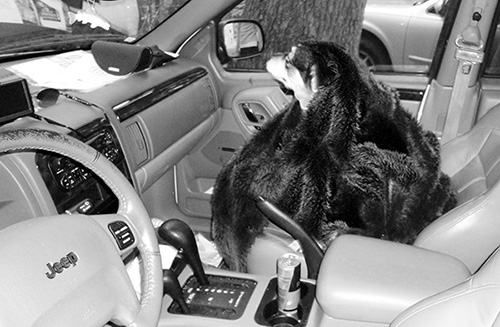 Also, while I was able to persuade the bear to exit my vehicle by pretending to be an old lady looking for her cat, it is now inside my premises. Although not immediately evident from the attached photograph, the bear is sitting between myself and the television remote control. As this effectively cuts off my ability to change channels and The View just started, this should be classed as an emergency situation. If I wanted to watch a group of old women carry on, I’d attend an MPOA community meeting.